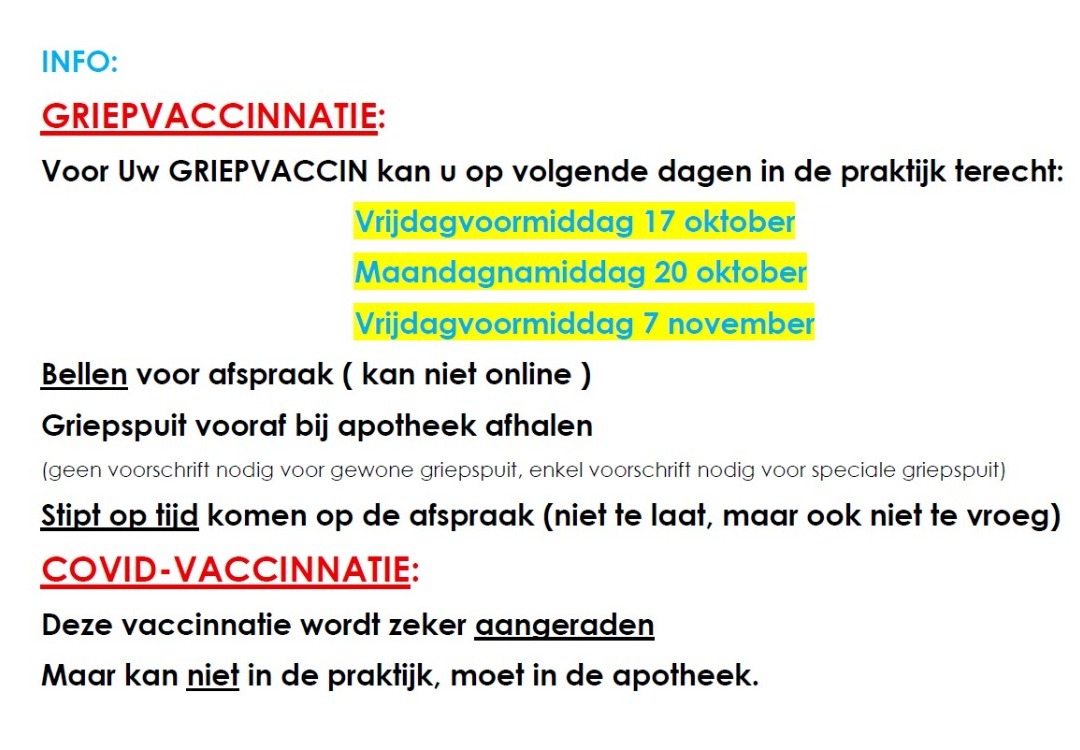 Patiënten moeten hiervoor op raadpleging komen, tenzij anders afgesproken met de dokter zelf.